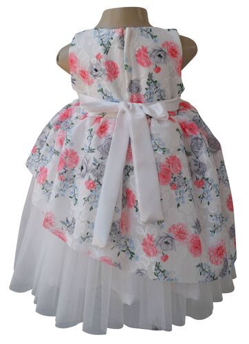 in Girls Pink & Grey Floral Printed Silk Frock