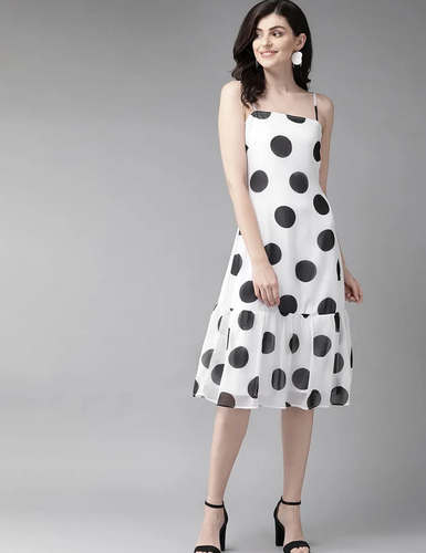 in Women Off-White Self Design Fit and Flare Dress