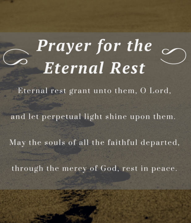 Eternal rest grant unto them, O Lord, and let perpetual light shine upon them. May their souls and the souls of all the faithful departed, through the mercy of God, rest in peace. Amen. O Lord, your sorrowing Mother stood by your cross; help us in our sorrows to share your sufferings.