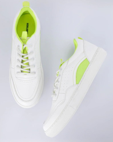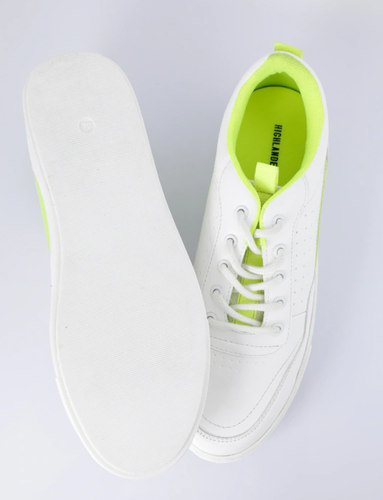 A pair of round-toe white & green sneakers, has regular styling, lace-up detail Synthetic Leather upper Cushioned footbed Textured and patterned outsole Warranty: 3 months Warranty provided by brand/manufacturer